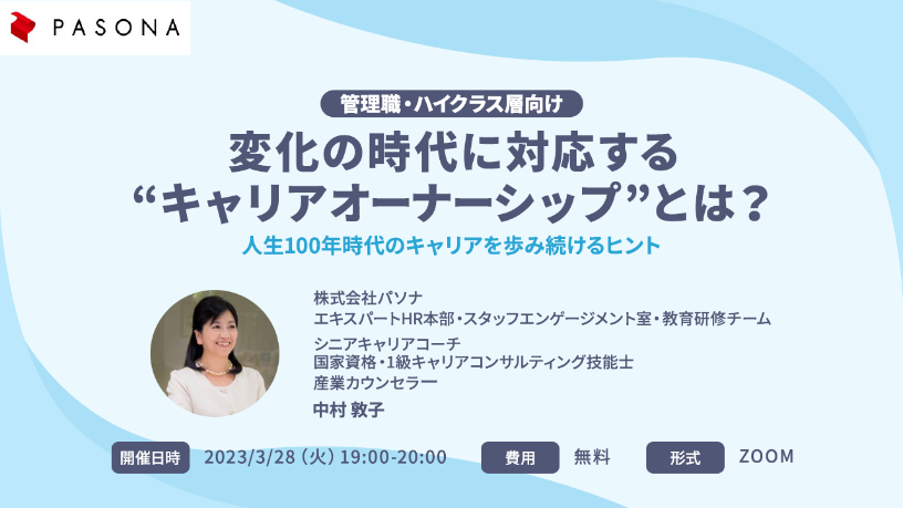 パソナ 管理職・ハイクラス層向けセミナー 3月28日開催『変化の時代に対応する“キャリアオーナーシップ”とは?』