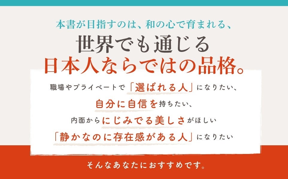 本書が目指すのは、和の心を通じて育まれる、世界でも通じる日本人ならではの品格です。