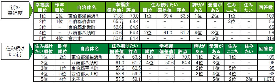 街の幸福度&住み続けたい街ランキング<TOP5> & 各種ランキング順位