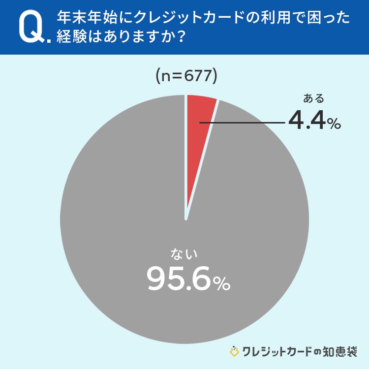 4.4%の方が、年末年始にクレジットカードの利用で困った経験が「ある」と回答しています。
