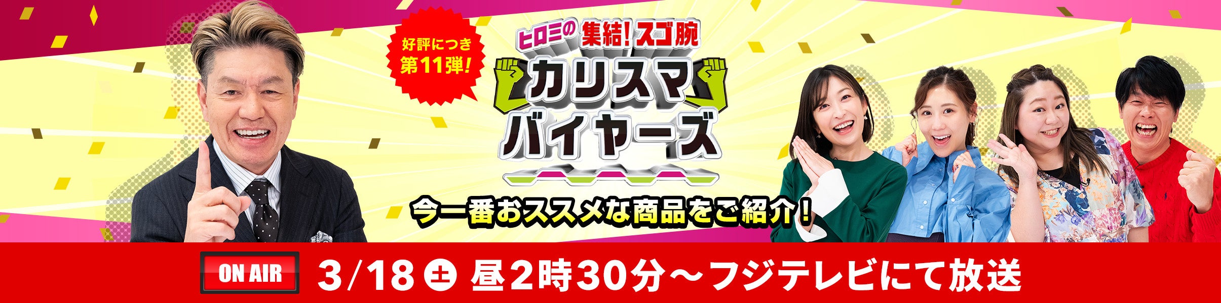 今、ヒットしている商品は何なのか? なぜそんなに売れるのか?その売り上げの秘密を知る“その道のプロ”が集結する番組「ヒロミの集結!スゴ腕カリスマバイヤーズ」の第11弾です。毎回放映する度に多くの反響をいただく人気番組から、今回も春に向けて取り入れたいメガヒット商品を様々なジャンルからご紹介します。ぜひご期待ください。