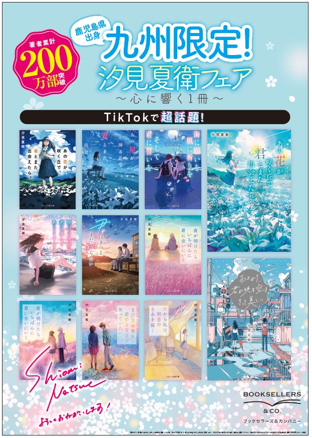 2023年に代表作である「夜が明けたら、いちばんに君に会いにいく/スターツ出版」と「あの花が咲く丘で、君とまた出会えたら。/スターツ出版」が映画化された九州(鹿児島)出身の汐見夏衛の書籍を各書店の1等地等でフェア展開し、装飾及び売場展開が優れた店舗のコンテストも開催いたします。