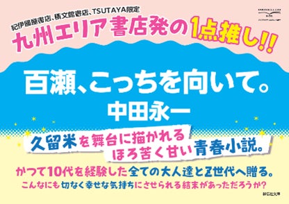 第一弾は、九州(福岡)出身の人気作家・乙一が、別名義の中田永一として発表した大人から若者まで全ての人の感動を呼ぶ青春小説「百瀬、こっちを向いて。/祥伝社」を書店員が作成したフリーペーパーとともに、各店舗で展開いたします。