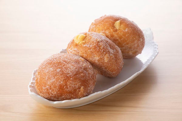 ↑<聖庵>ボンボロー二(1個)税込226円/イタリアのスイーツを特製のカスタードクリームと天然酵母パンで仕上げました。