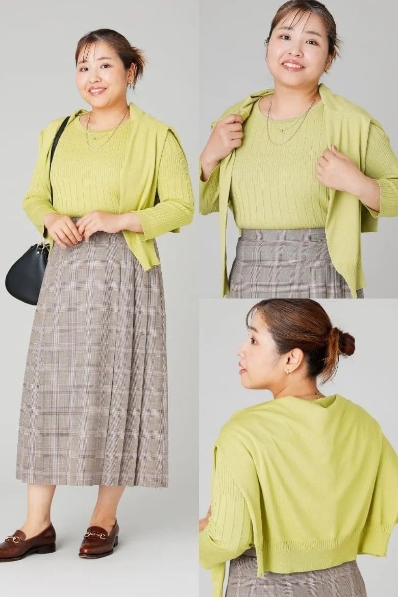 秋らしい空気を感じながらも、日中はまだ軽やかな装いで過ごしたいこの時期。ジャケットに頼らずきちんと感を演出できるオフィススタイルをプラスサイズモデルの吉野なおさんに着ていただきました!