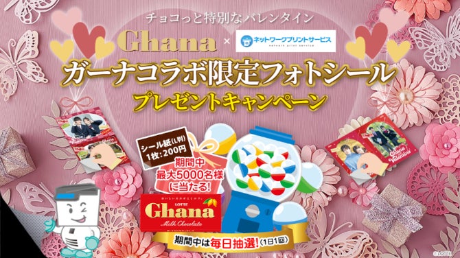 2月4日から3月3日にかけて「ガーナコラボ限定フォトシール プレゼントキャンペーン」を実施します。