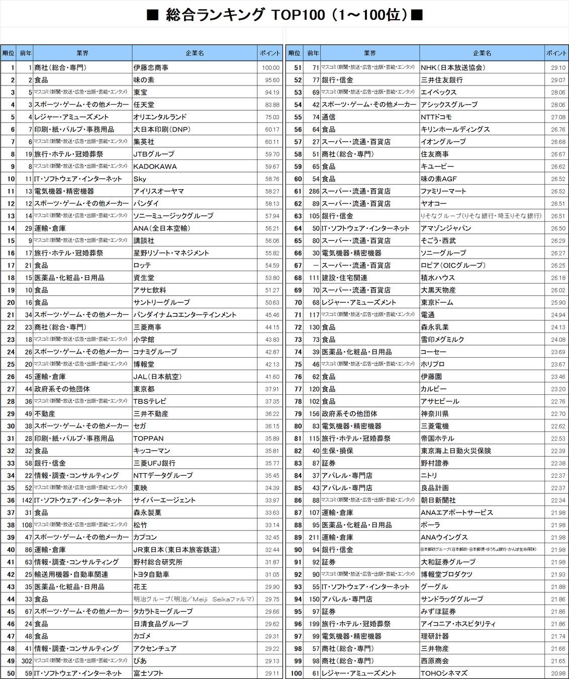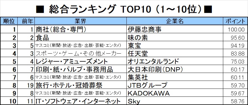 2027年「就職人気企業ランキング」、トップは8年連続伊藤忠商事。3位に「鬼滅」「国宝」の東宝がランクイン。ANA、JALなど旅行業界もインバウンド需要を受けて人気復調!