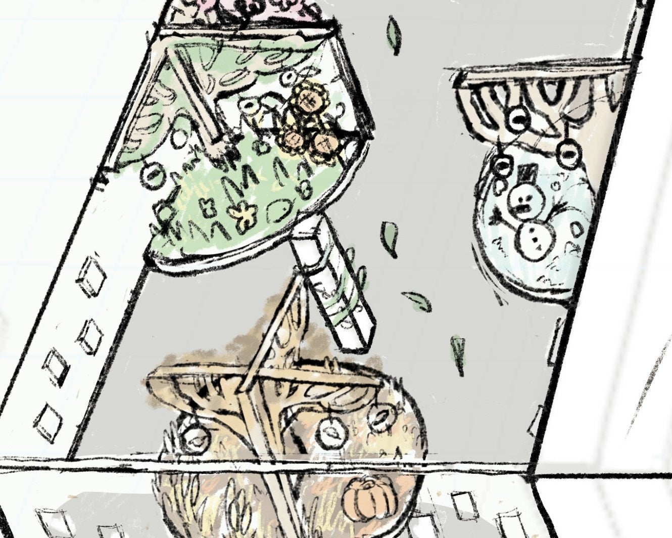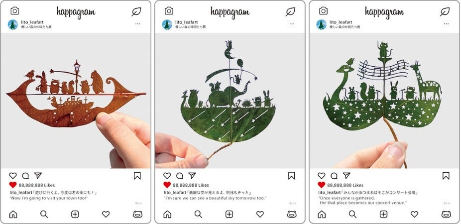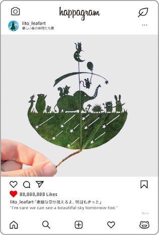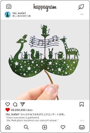 葉っぱ切り絵アーティストのリトさんが手掛ける、心温まる作品の世界観を彩り豊かに再現。