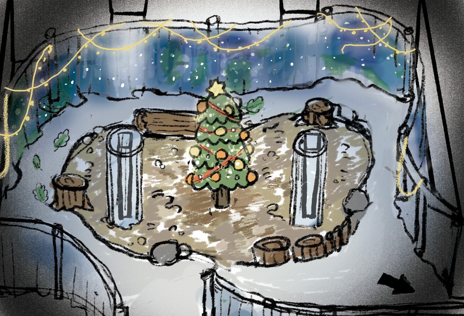 第4章「森のパーティーにご招待」エリアがクリスマスムード一色に! 森の仲間たちと一緒にクリスマスを祝いましょう。