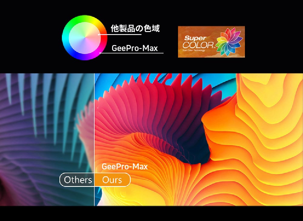 GeePro-Maxは、多様なデバイスと接続して、多目的にお使いいただけるスマートなプロジェクターなのです。