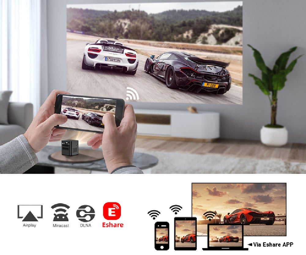 - AirPlay、MiraCast、EShare対応。iPhoneやAndroidデバイスと接続