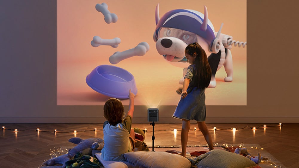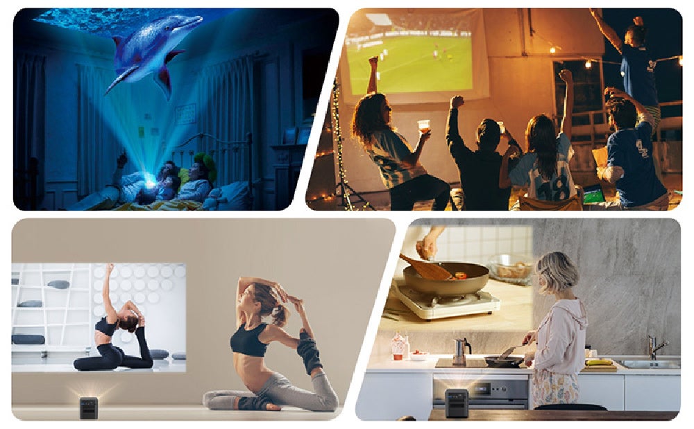 - 200インチまでの大画面で迫力ある映像を。鮮やかな高画質で楽しんで