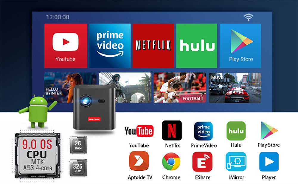 Androidアプリ対応/3D対応/最大200インチ 1080P 4K/鮮やか350ANSIルーメン/7800mAHバッテリー/スマホとワイヤレス接続