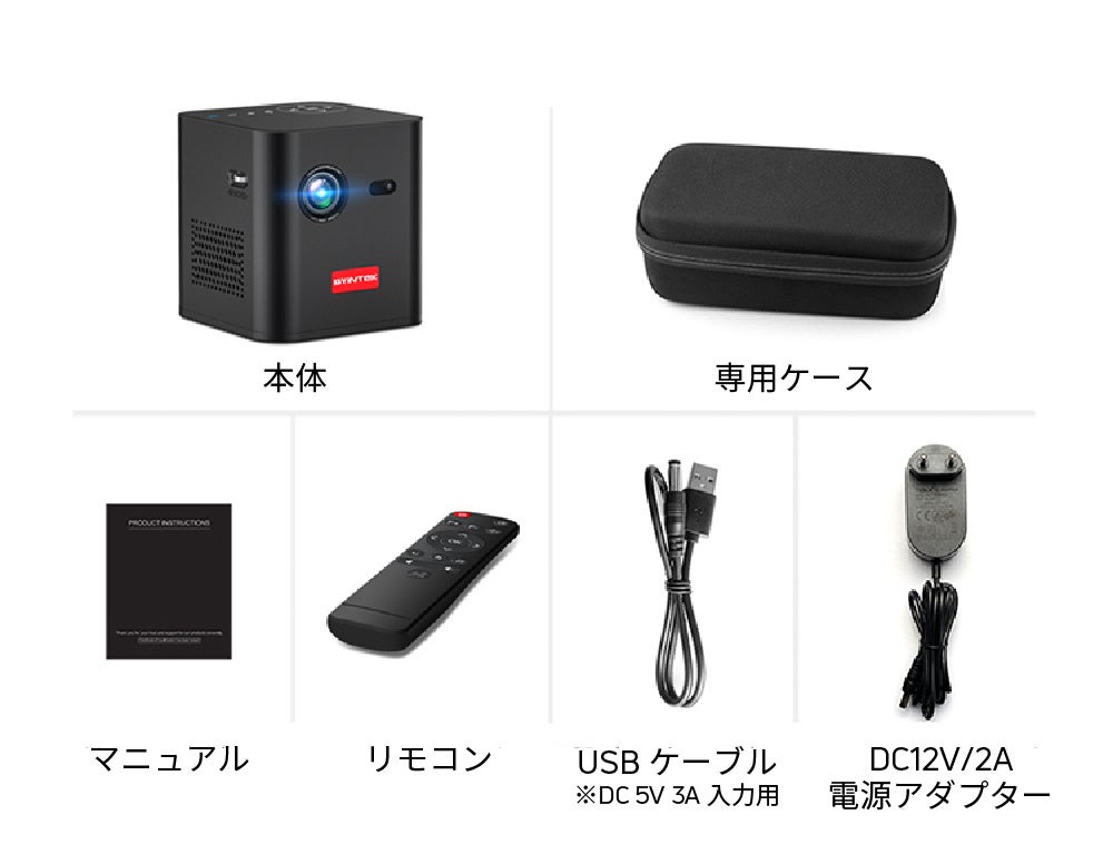 - リモコンやケーブル付属、専用ケース付きで持ち運びも簡単