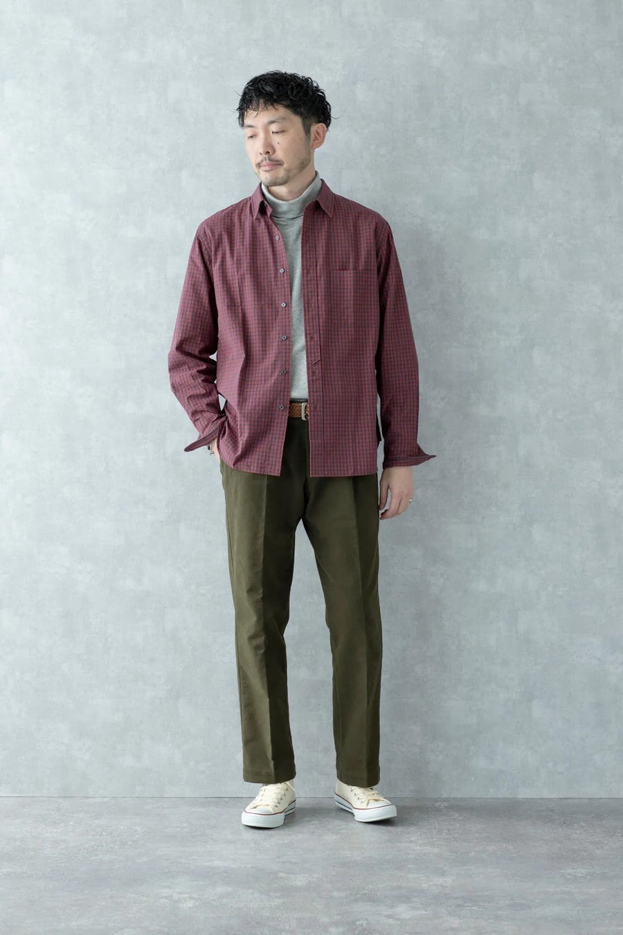 秋カラーのチェックシャツは、ボックスシルエットのリラックス感が、洗練された大人の雰囲気を演出してくれます。アースカラーのパンツと合わせれば、温かみのある優しい雰囲気のコーディネートに仕上がります。上品な印象のタートルネックカットソーと合わせてカジュアル感を中和し、クリースライン入りのパンツを合わせれば、子供っぽくならず、こなれたカジュアルスタイルを楽しめます。