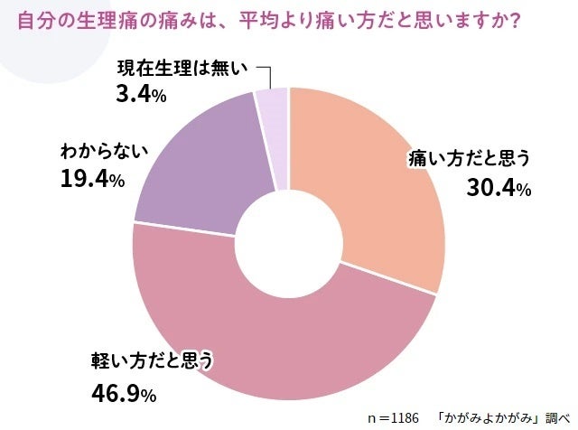 「自分の生理痛の痛みは、平均より痛い方だと思いますか?」との問いに、30.4%が「痛い方だと思う」と回答しました。