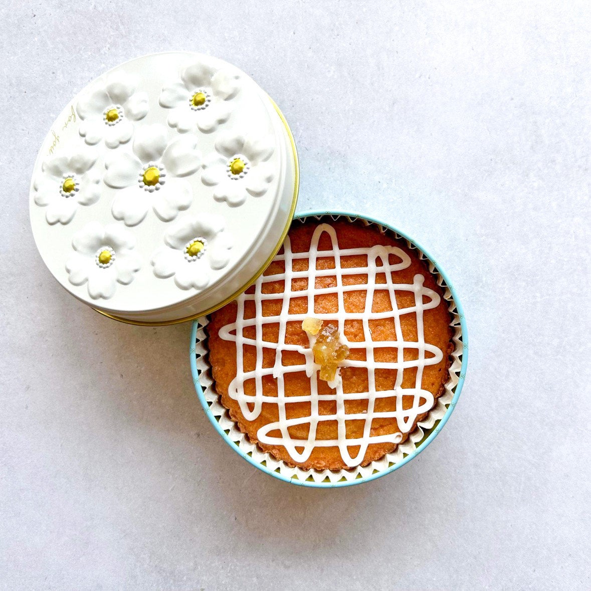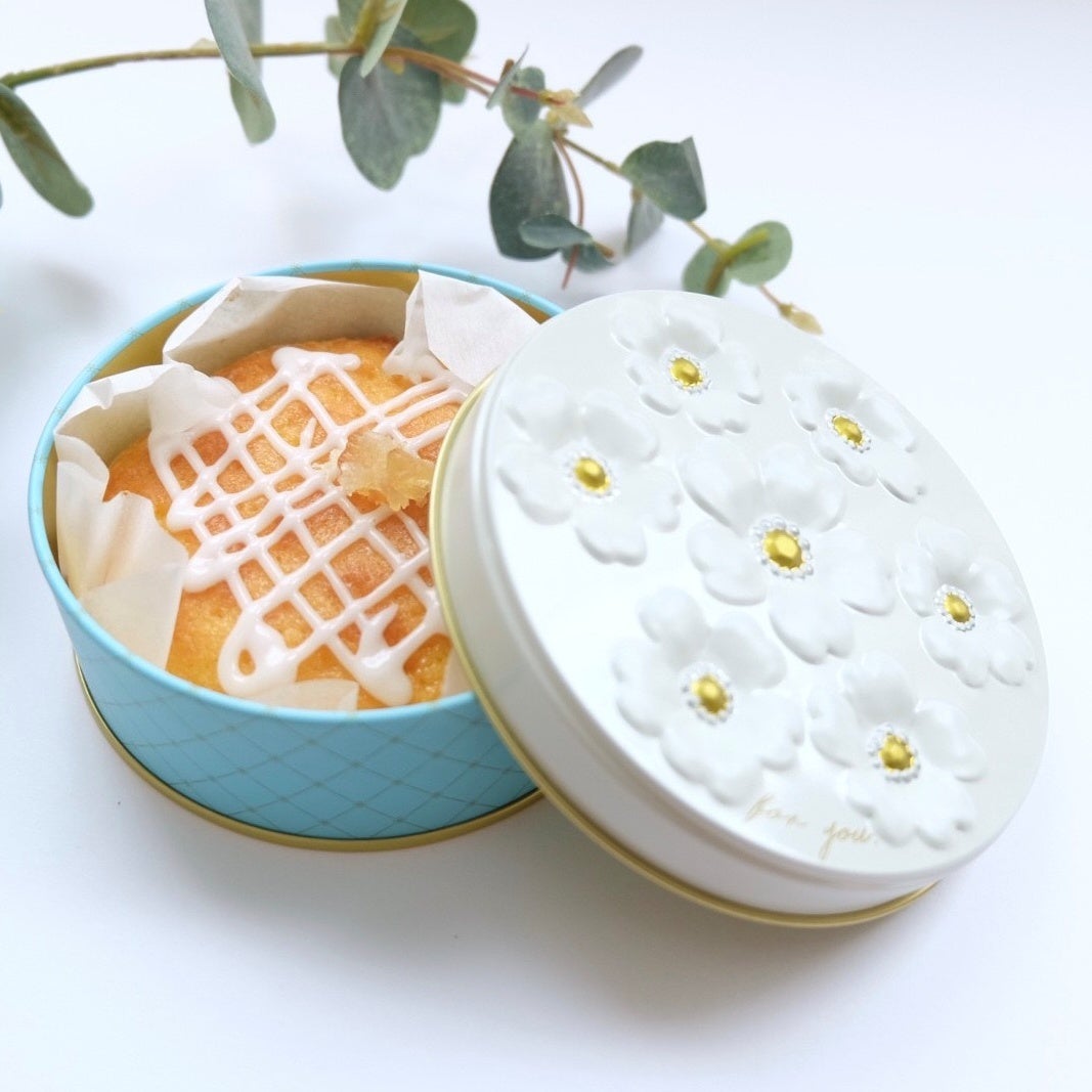 可愛らしいブーケ缶に入ったレモンケーキは、ギフトにも。
