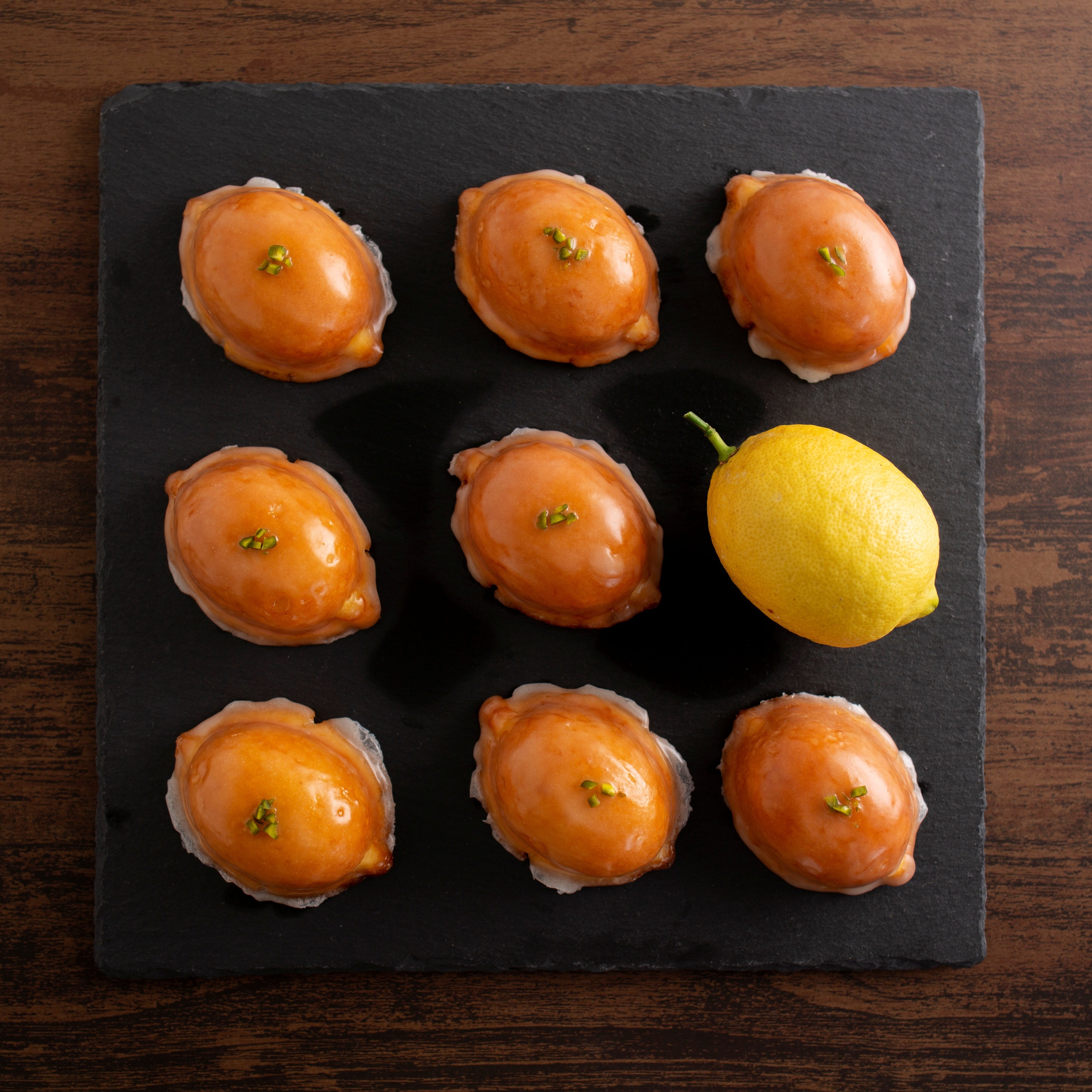 フランスの伝統菓子"ウィークエンドシトロン"をレモンの形にアレンジ。レモンピールたっぷりのパウンドケーキ生地にアプリコットジャムをかけて、レモン果汁のシュガーコーティングでツヤツヤに。