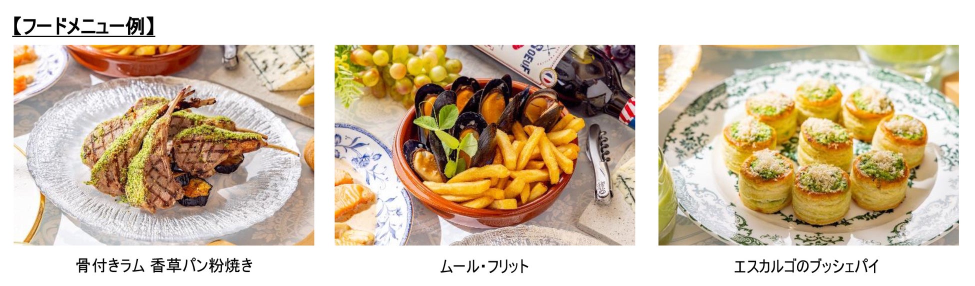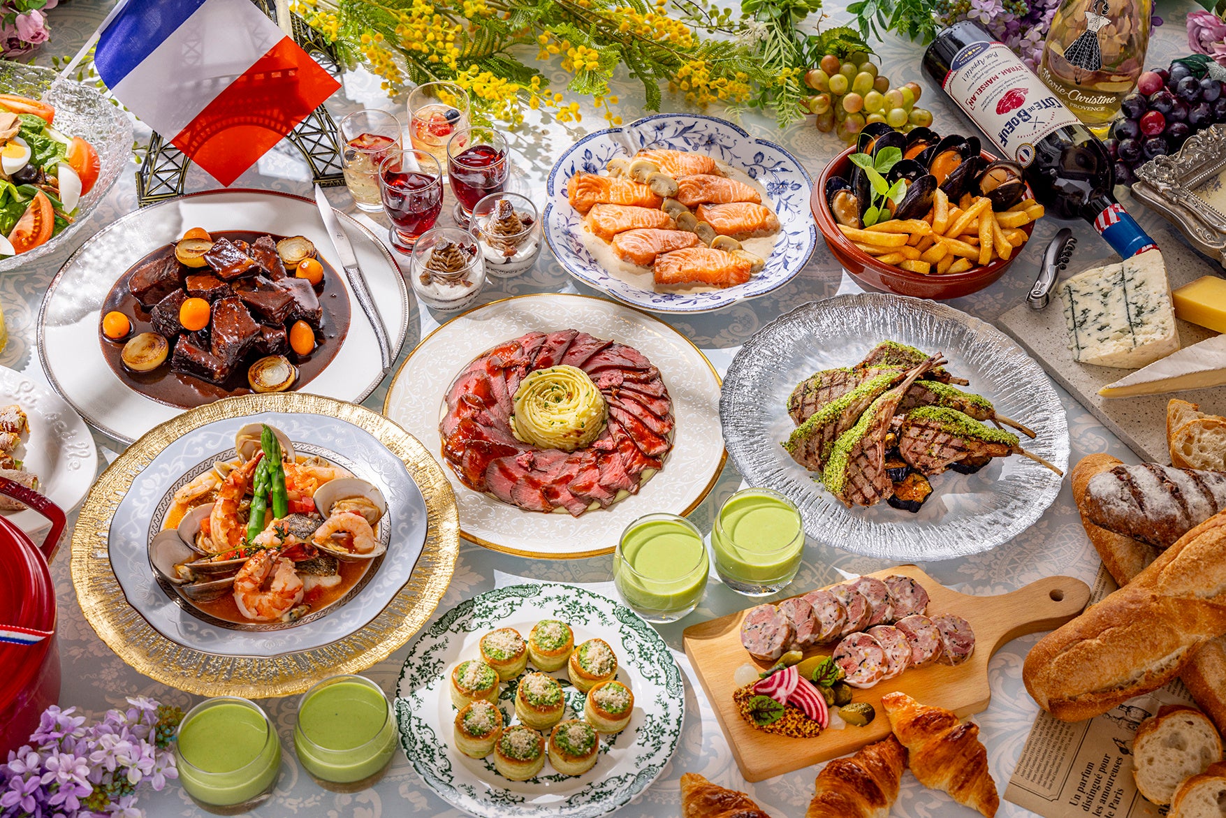 本イベントでは、多彩な調理法で仕上げられたフランス料理の数々を、コースではなくカジュアルにビュッフェスタイルでお楽しみいただけます。ブルゴーニュ地方の郷土料理である「エスカルゴのブッシェパイ」、フランスの伝統的な家庭料理「パテ ド カンパーニュ」などのコールド料理のほか、ホット料理には、低温の油でじっくりと仕上げた「鴨のコンフィ」や沿岸地域で好まれるムール貝を使った「ムール・フリット」など、その土地で育まれた食材に合った最適な調理法でご提供いたします。また、人気のライブステーションでは、定番のローストビーフに加え、「クレープシュゼット」や「そば粉のガレット」のほか、週末限定で「ラクレットチーズ」をご用意しております。さらに、今回はクロワッサンやハードブレッドなどがお好きなだけお楽しみいただけるパンビュッフェも開催いたします。