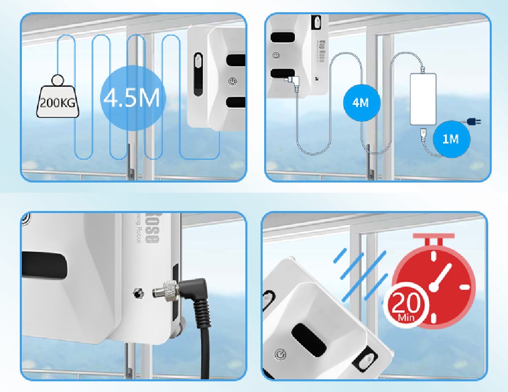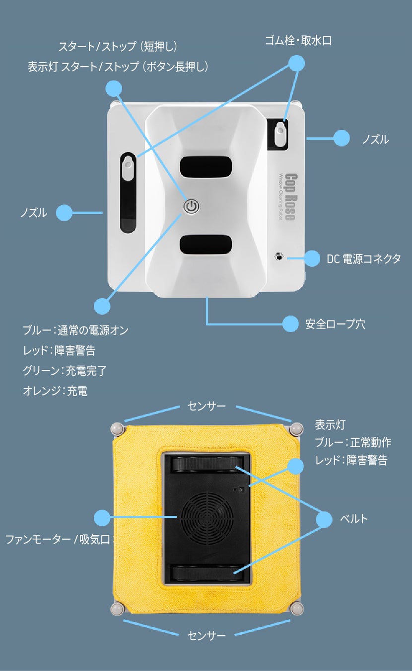 ・製品をガラスに置く前に電源を入れてください。マシンがガラスの表面に安全に取り付けられていることを確認してから離してください。