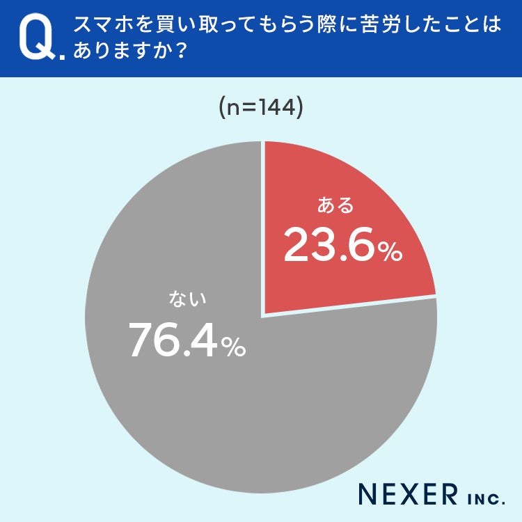 【スマホを買い取ってもらったことがある方に調査】23.6%が、買い取ってもらう際に「苦労したことがある」
