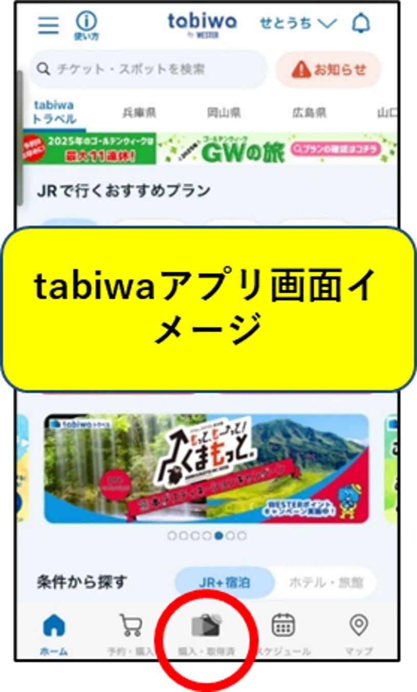 整理券の配布は「tabiwa」アプリをダウンロードしている方で、かつ2025年5月9日以降に利用開始または旅行開始となる、以下のいずれかの商品を購入された方が対象です。