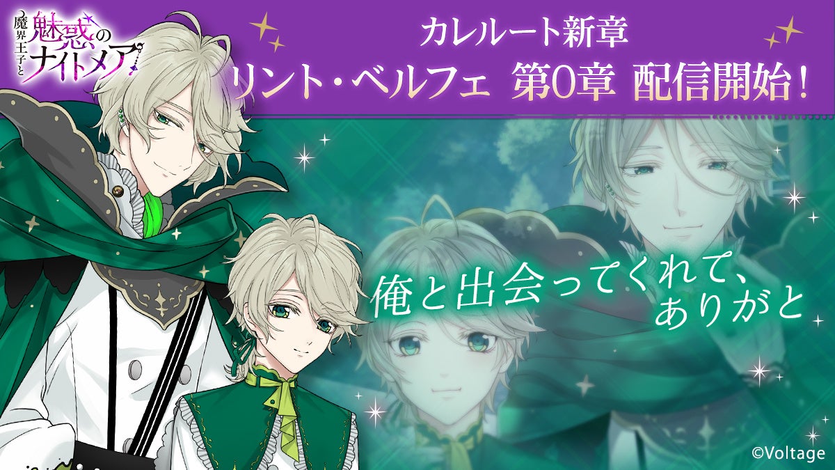 また、リントの「カレルート第0章」の配信を記念して、アプリ内では様々なキャンペーンやイベントも開催しております。この機会にぜひ「魔界ナイトメア」にて、魅惑的で甘いストーリーをお楽しみください。