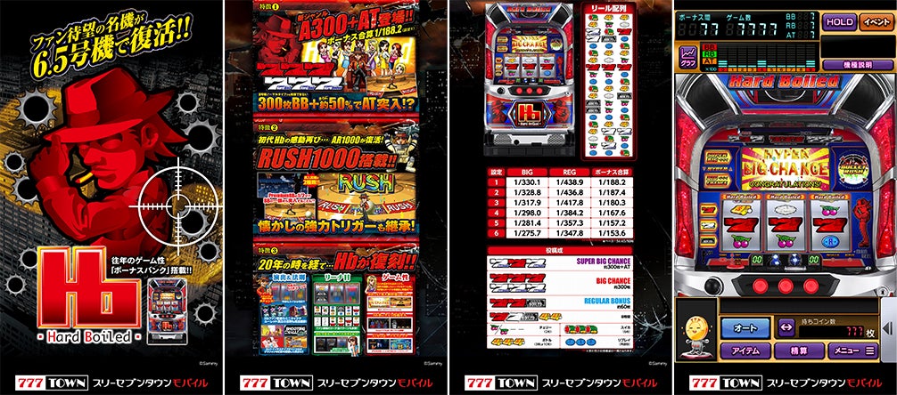 株式会社サミーネットワークスが運営するスマートフォン向けぱちんこ・パチスロゲーム「777TOWN mobile」(スリーセブンタウンモバイル)は2022年12月13日(火)より、サミー株式会社の「パチスロハードボイルド(2022)」アプリを配信いたします。