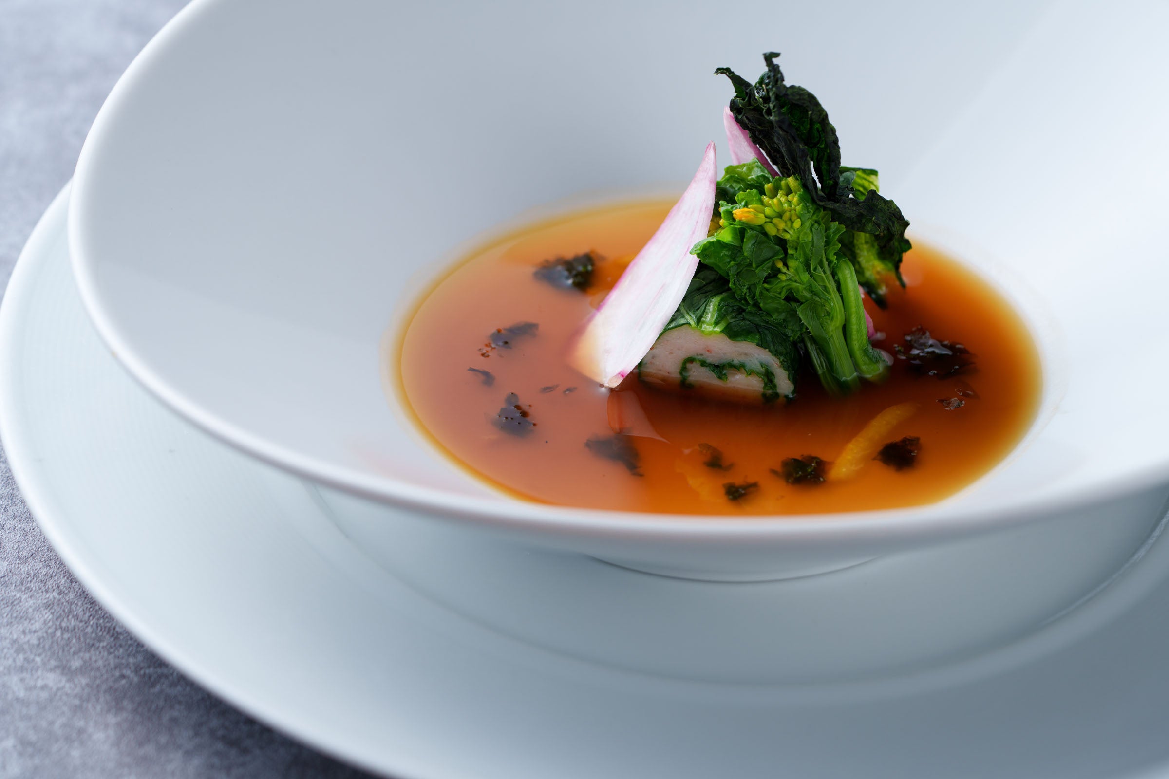 宮城県産ちぢみ雪菜とオマール海老のムース
