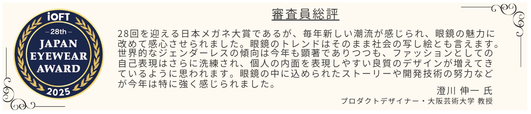 このような状況の中、『日本メガネ大賞2025』では、従来のデザイン部門とテクノロジー部門に加え、新たにキッズ部門とアクセサリー部門を設けより幅広いカテゴリで革新的な製品を評価することになりました。