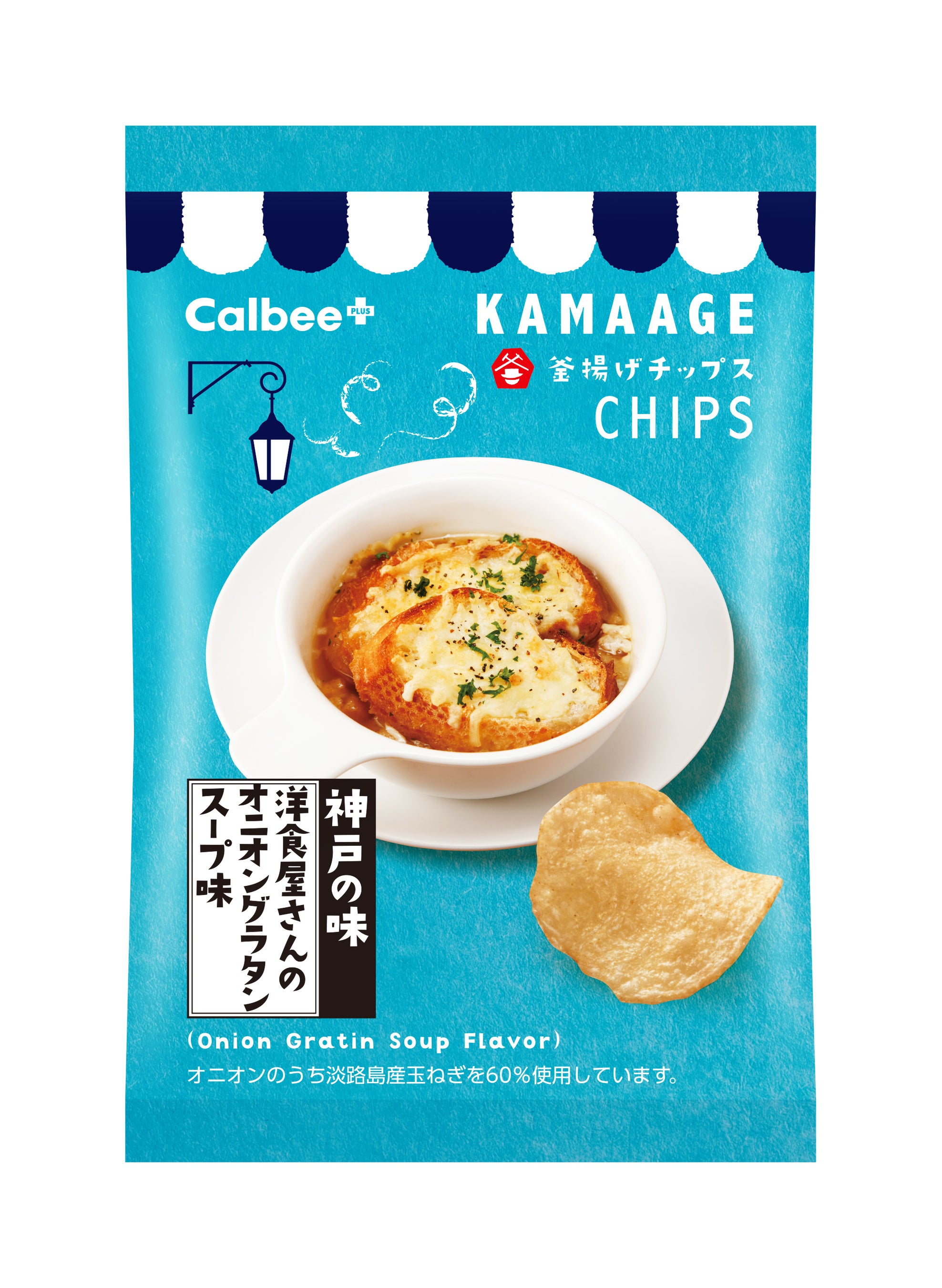 「カルビープラス 神戸ハーバーランドumie店」 10周年の記念商品淡路島産玉ねぎ※1の甘みとチーズのコクがクセになる『釜揚げチップス/揚げたてポテトチップス 洋食屋さんのオニオングラタンスープ味』