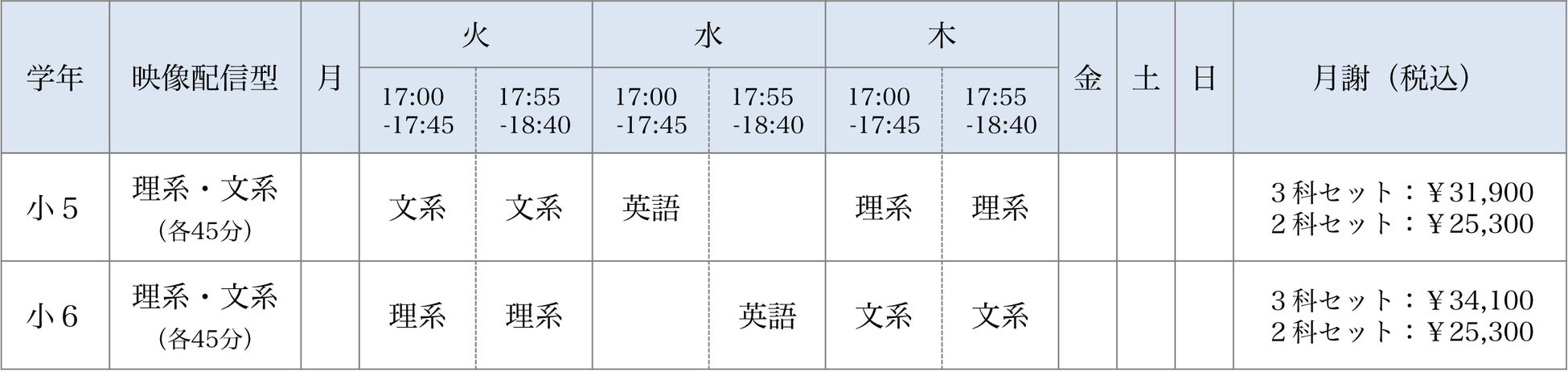 小学5年生 3科セット:31,900円 2科セット:25,300円