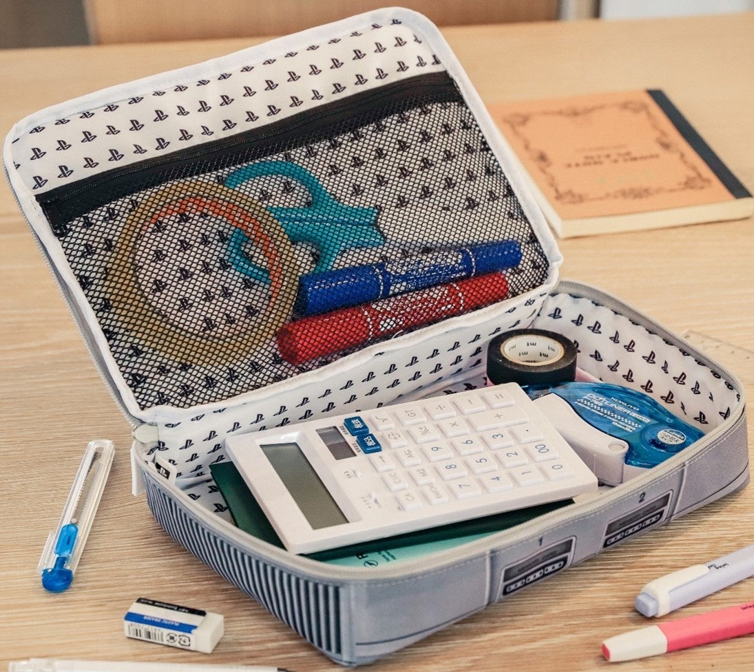 大容量でかさばる小物もスッキリ収納。内側にはジップポケットも付いています。