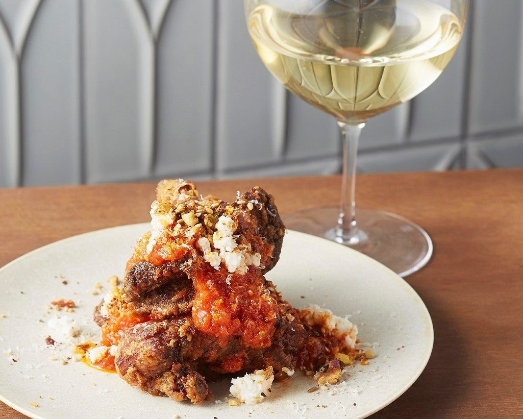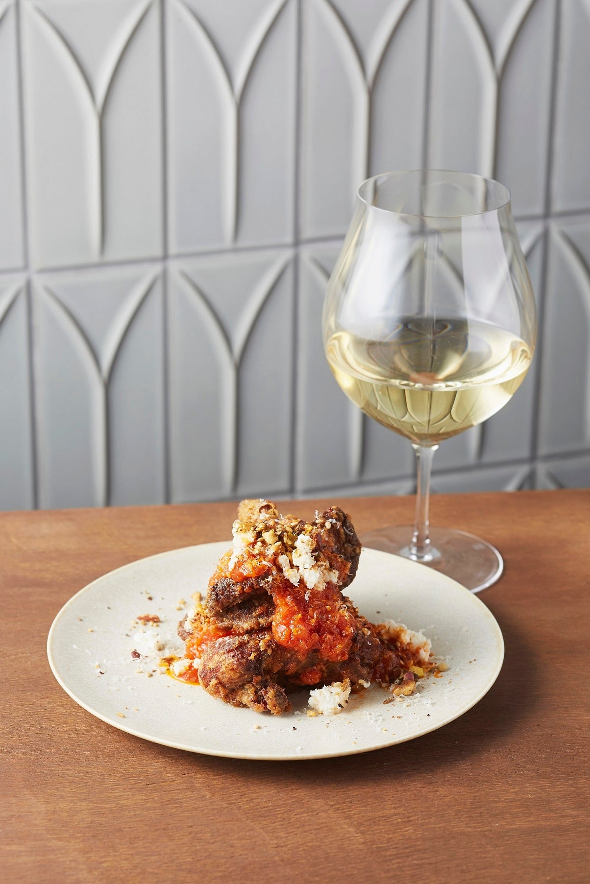 ぶどう山椒やスパイス、ナッツ、カカオハスク(カカオ豆の皮)などをブレンドしたオリジナルの“デュカ(アラブの複合スパイスのこと)”「アラビアン ナッツ&スパイス」と鶏ももの唐揚げは相性抜群。