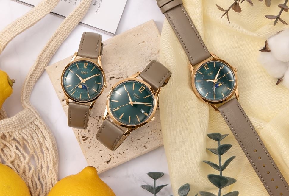「ヘンリーロンドン」の第一の特徴は、アンティークウォッチのようなデザインを楽しめること。ドーム型のガラスやメッシュブレスといった、アンティーク時計のようなデザインが1万円台から手に入るのがブランドの魅力の1つです。