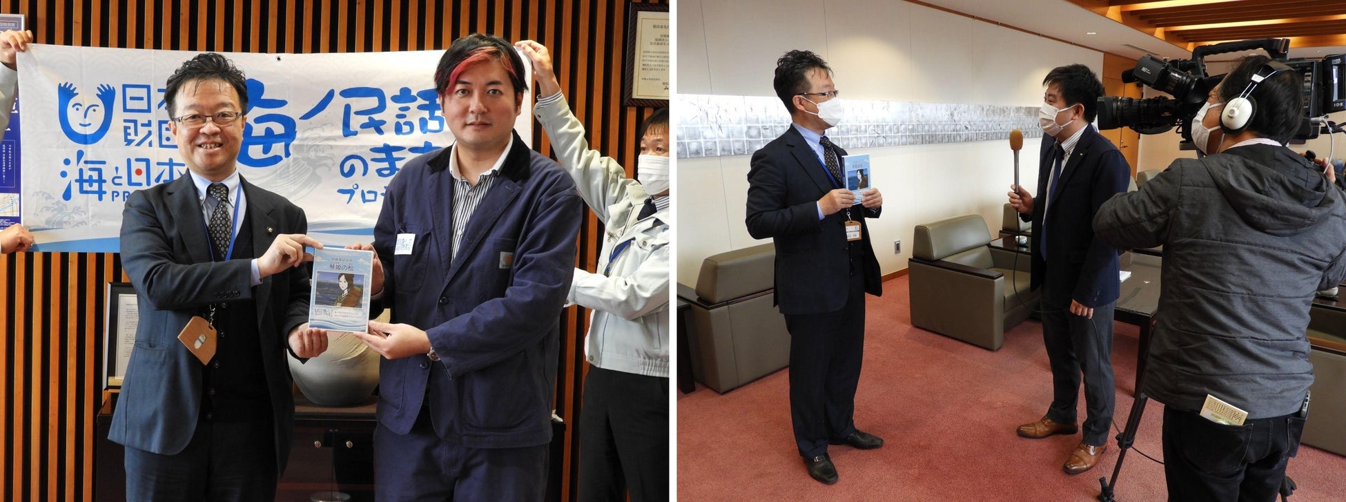 海ノ民話のまち 宮崎県延岡市のアニメ「琴姫の松」が完成!認定委員長が読谷山洋司市長を表敬訪問し完成アニメを贈呈