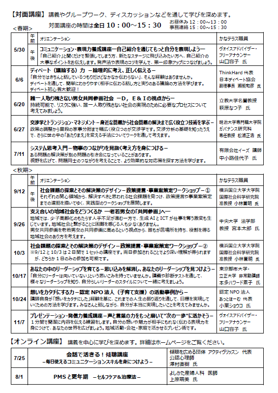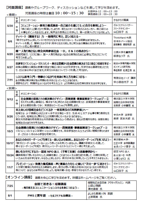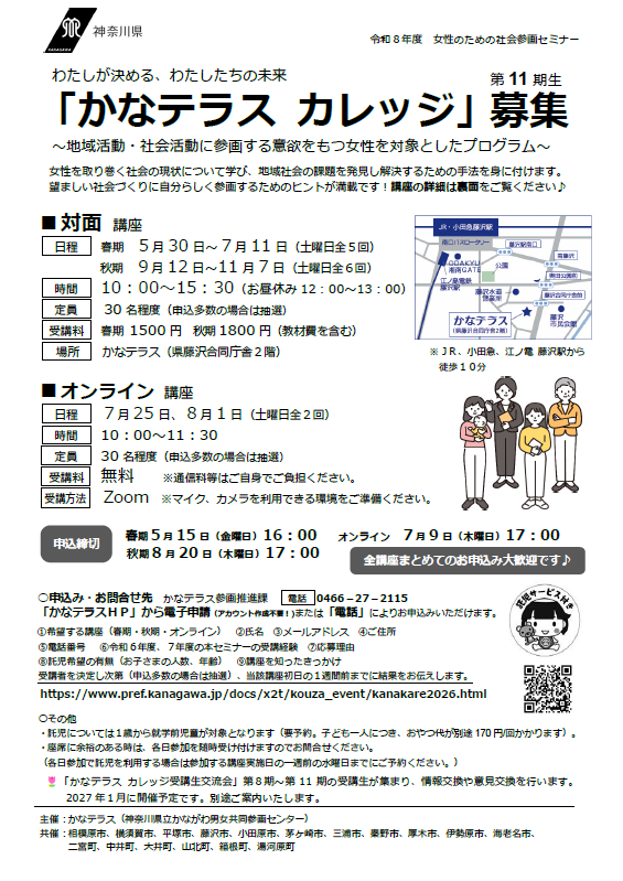令和8年度 女性のための社会参画セミナー「かなテラス カレッジ」の受講生を募集します!