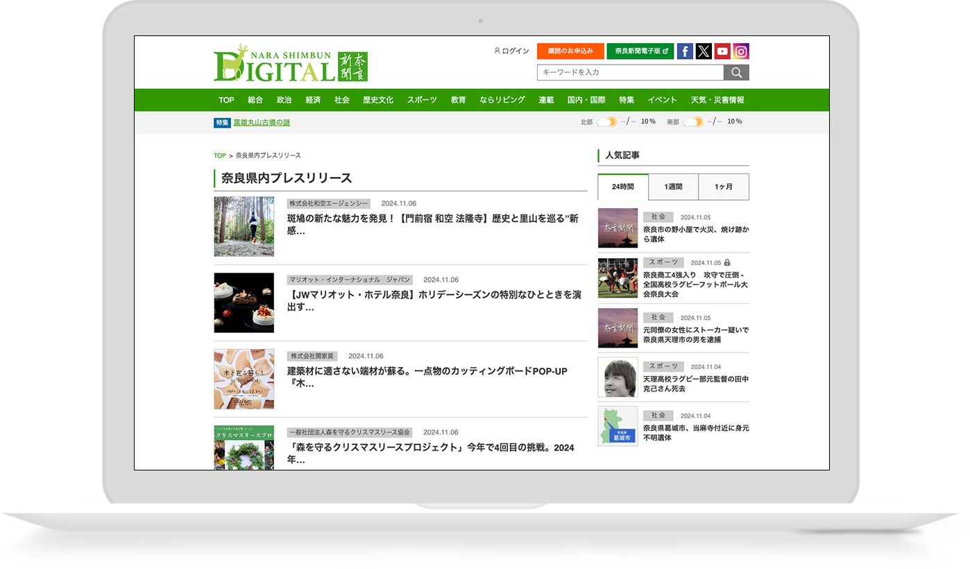 1.奈良新聞ニュースサイト「奈良新聞デジタル」に奈良県に関するプレスリリースコンテンツを掲載