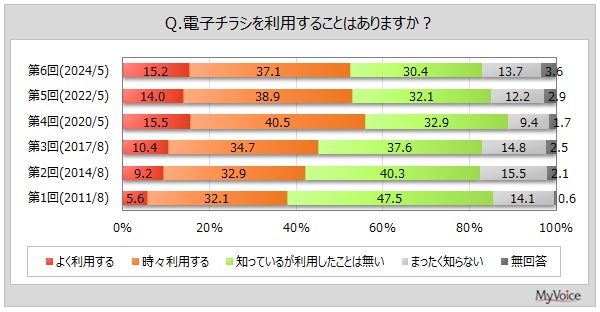 折込チラシの閲覧状況、電子チラシの利用状況などについて聞いています。調査結果をお知らせします。