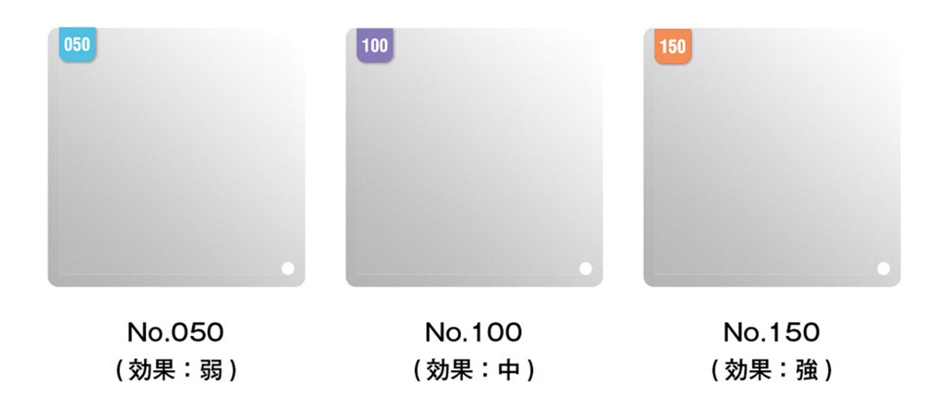 No.050が効果[弱]、No.100が効果[中]、No.150が効果[強]です。