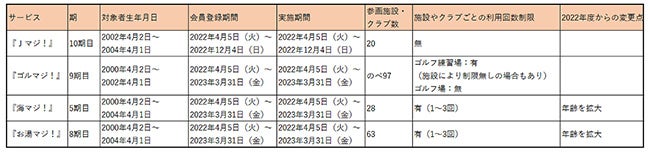 【2022年度サービス内容の詳細】※2022年4月5日時点