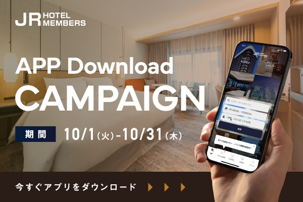 北海道から沖縄、台湾まで、個性豊かな133施設のホテル・旅館が集うJRホテルグループの会員プログラム「JRホテルメンバーズ」では、2024年10月1日(火)~10月31日(木)までの期間限定で、会員向けスマートフォンアプリ「JRホテルメンバーズ 公式アプリ」のダウンロードキャンペーンを実施いたします。