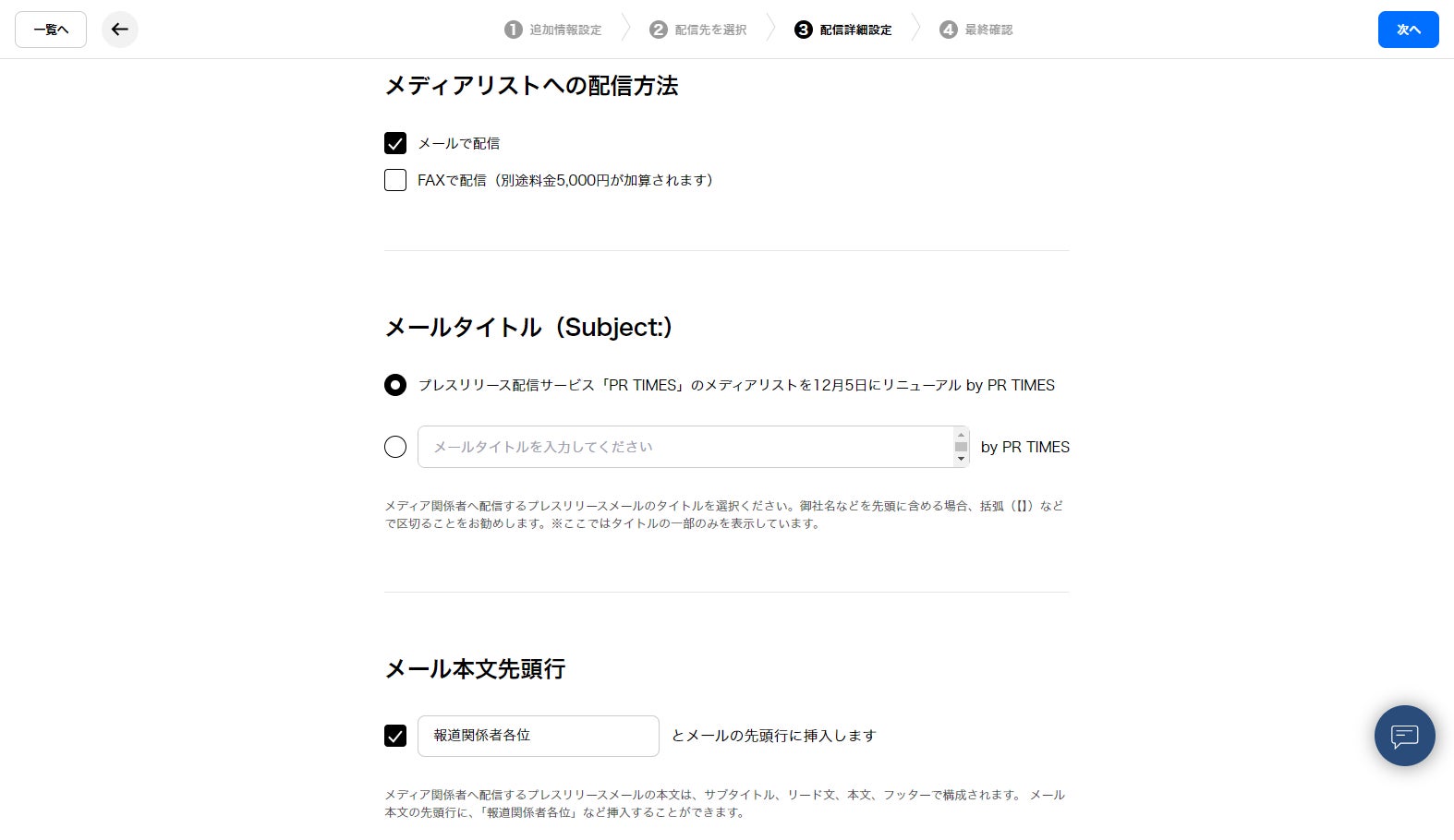 プレスリリースタイトルとは異なるメディア向け独自の件名設定で、注目度を高めることを狙えます。