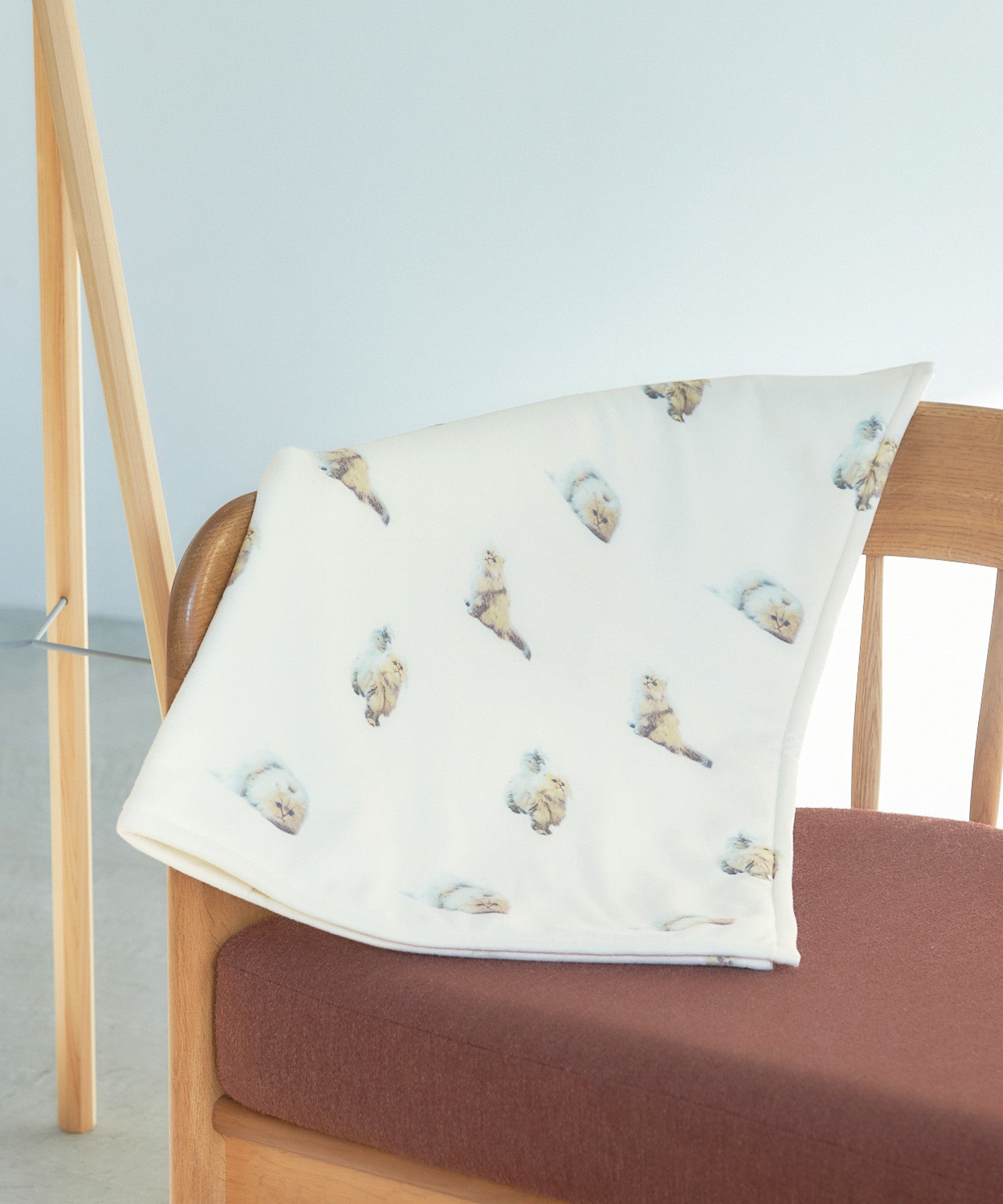 思わずぎゅっと抱きしめたくなるような、むぅちゃんの写真をプリントしているクッションや、日常使いのしやすいポーチ、ブランケットの全3アイテムを展開します。
