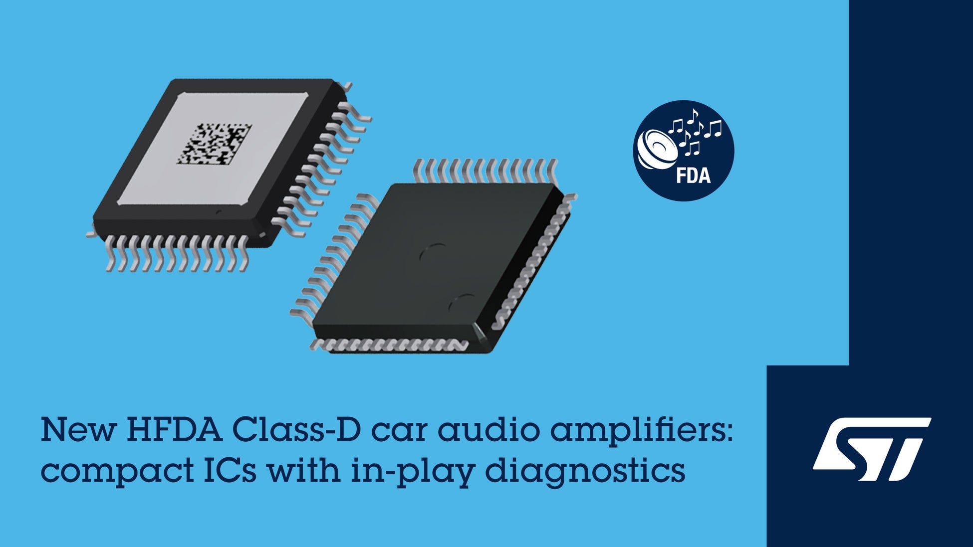 STマイクロエレクトロニクス(NYSE:STM、以下ST)は、新しい車載用D級オーディオ・アンプ(デジタル・オーディオ・アンプ)「HFDA80D」および「HFDA90D」を発表しました。システム全体の小型化に貢献し、最先端の診断機能とノイズ対策導入により回路設計の簡略化が可能な両製品は、スマート・コックピット・アプリケーションに最適です。