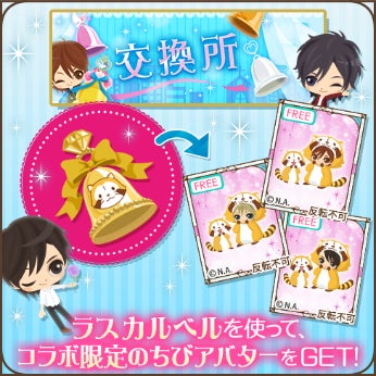 コラボ限定の交換所がオープンいたします。アプリ内で開催中のイベントにて手に入るアイテム「ラスカルベル」を集めると、ラスカルの着ぐるみに身を包んだダンナ様とラスカルの限定ちびアバターが手に入ります。