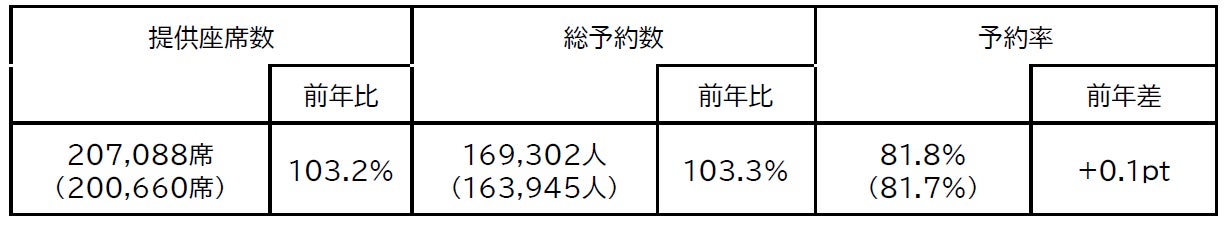 詳細につきましては、添付別紙JALグループ各社ご予約状況をご覧ください。