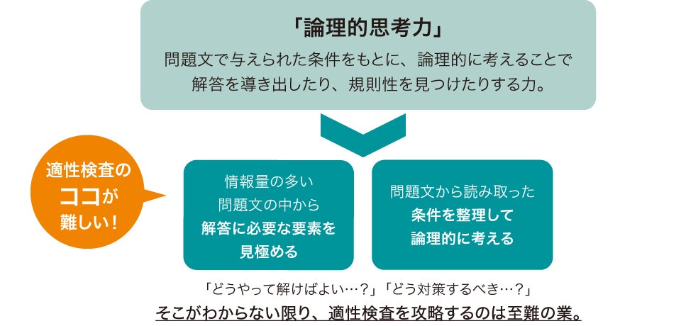 適性検査が、「どこから手をつけてよいかわからない問題」から、「順序立てて問題に向き合えば、攻略できる問題」に変わる。