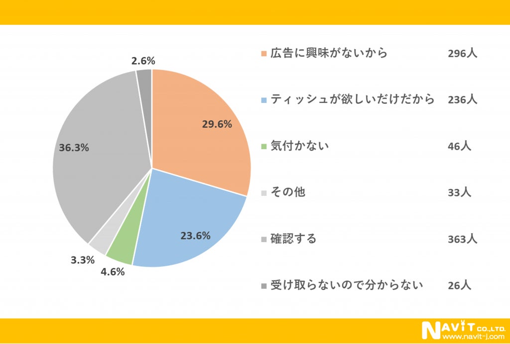 質問:ポケットティッシュ内の広告を確認しない主な理由は何ですか?(対象:1,000名)