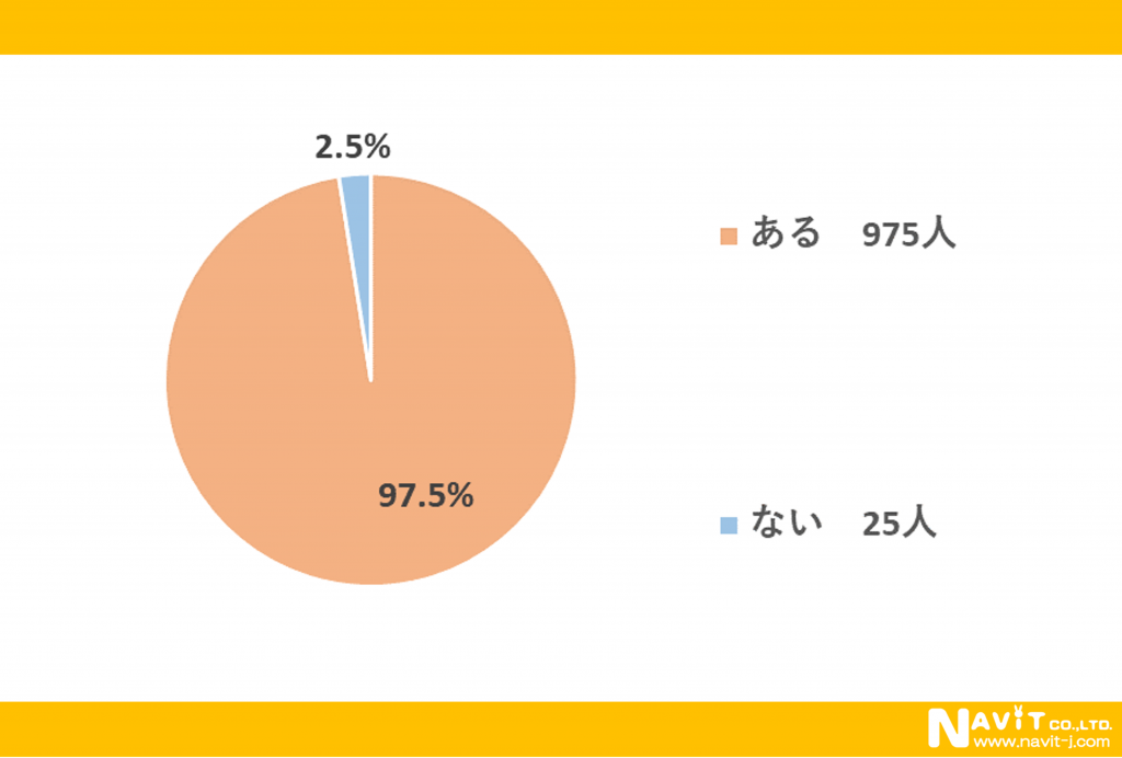 「街頭で配布されているポケットティッシュを受け取ったことがありますか?」という質問については、「ある」が97.5%、「ない」が2.5%という結果になり、9割以上の方が受け取ったことがあると回答していました。